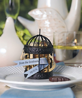 These metal birdcages have been painted black to allow for flawless integration into any colour theme. Fill with your choice of treat for an elegant favour presentation or incorporate a tag or card and use them as place card holders!